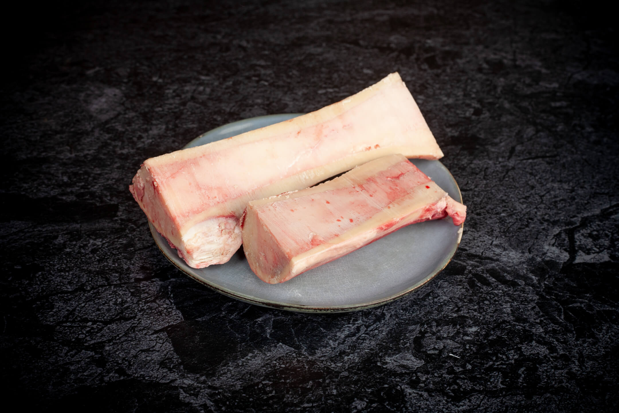 Deze mergpijp bootjes zijn in de lengte doorgezaagd. Perfect om te roosteren in de oven: even kort garen en het merg wordt zacht, romig en vol van smaak. Heerlijk op een stukje brood met wat zout en peper.